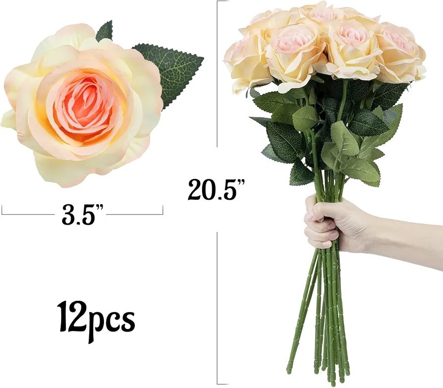 Produktinformationen "12 Stück künstliche Rosen Champagner Kunstblumen zur Dekoration, Seiden Rosen..."