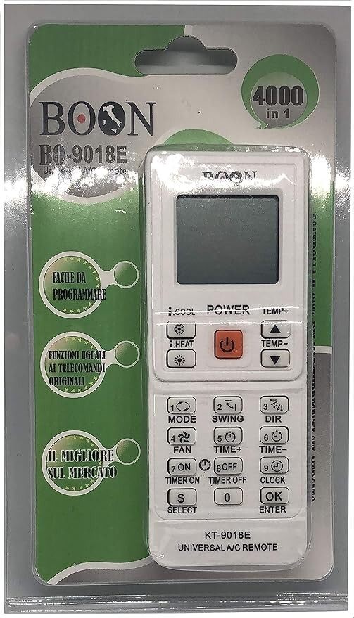 Erleben Sie die bequeme Steuerung Ihrer Klimaanlage mit der universellen Fernbedienung BOON BO-9018E, kompatibel mit einer Vielzahl von Geräten. Die intuitive Bedienung und das ergonomische Design dieser Fernbedienung ermöglichen eine einfache und mühelose Handhabung. Mit der hochwertigen Verarbeitung und der zuverlässigen Leistung wird sie schnell zum unverzichtbaren Zubehör für Ihr Haushaltsgerät.