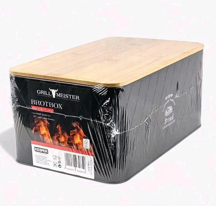 Präsentieren Sie Ihr Brot stilvoll in der hochwertigen Grillmeister Brotbox von KESPER. Dieser elegante Brotkasten in ansprechendem Schwarz mit den Maßen 28 x 13 x 18 cm besticht durch sein rechteckiges Design und ist aus langlebigem Metall gefertigt. Der integrierte Bambusdeckel verleiht dem Kästchen nicht nur eine ästhetische Note, sondern sorgt auch für eine luftdichte Aufbewahrung Ihrer Backwaren. Ideal für Liebhaber von Ordnung und Design im Bereich Möbel & Wohnen sowie Kochen & Genießen. Mit dieser Brotbox setzen Sie auf Funktionalität und zeitloses Interieur für Ihre Küche.